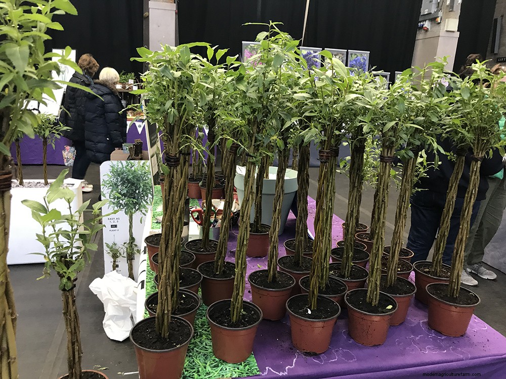 The braided willow trees seen below are supplied by The Willow Wand, who have design-protected their stunning symmetrical ‘wands’ of living willow. These graceful whips are woven by hand by experts and, given a few weeks, grow a beautiful topiary crown at their tops. They live outside, so will need a garden, patio or balcony to be maintained.