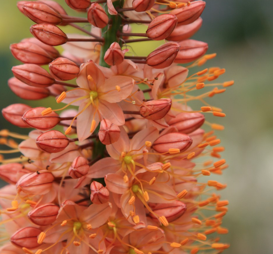 The stately heads of these beautiful foxtail lilies enjoy a sunny spot in fertile, sandy, well-drained soil. The myriad miniature flowers are in bloom in June and July.