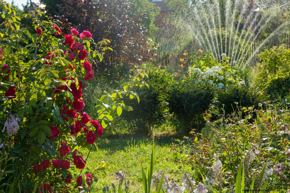 Set up a timed sprinkler or attach a soaker hose to your water butt to allow for gradual watering at a controlled level to suit your plants. The best time to water is early in the morning or in the evening after sunset, and be sure to move all containers and pots to in reach of the sprinklers’ water.