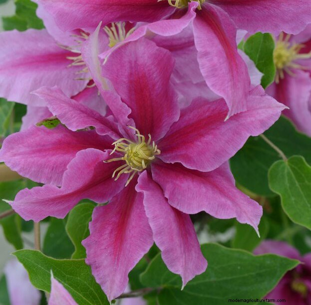 Part of the Evison and Poulsen clematis breeding programme, the parents of this new cultivar were chosen for their special flowering and plant habit qualities. Clematis ELODI is a compact dwarf clematis ideal for growing in containers; it remains a mound plant and does not climb. It flowers in early summer, repeat flowering mid to late summer and is winter hardy in the UK. From: Raymond Evison Clematis