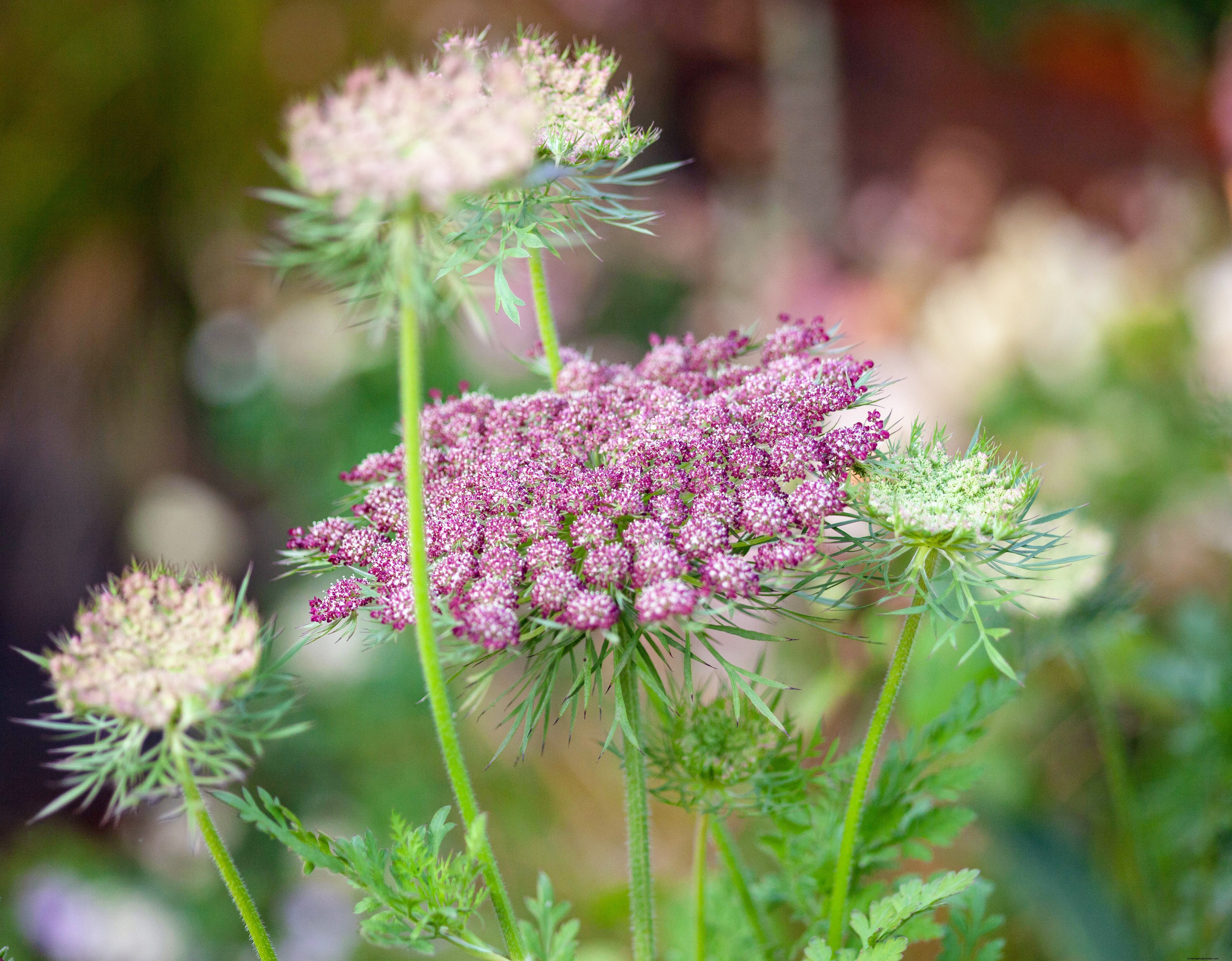 Try growing light and airy plum-coloured Daucus carota ‘Dara’, classic Ammi majus, Anthriscus sylvestris ‘Ravenswing and Angelica archangelica all put in an appearance.
