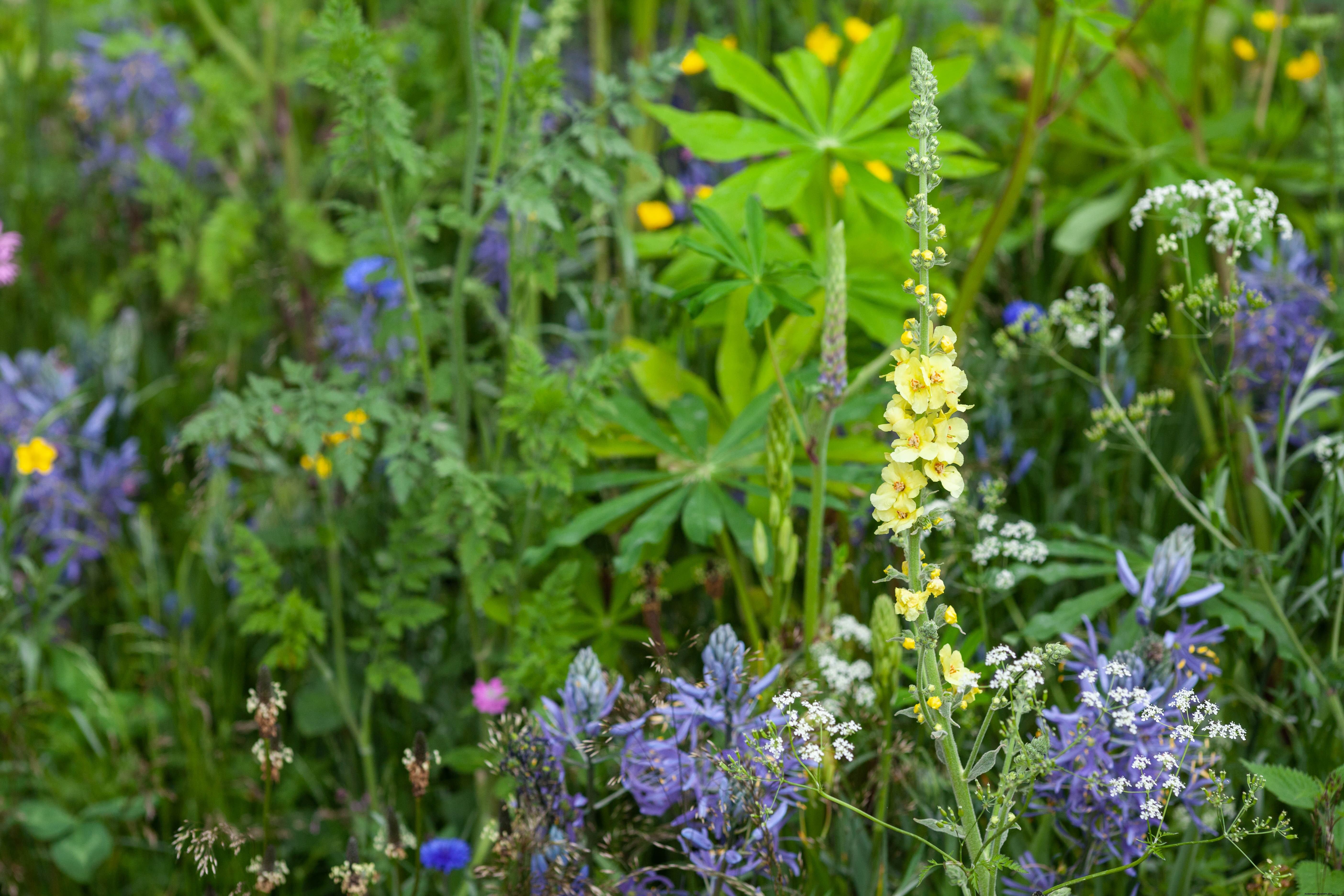 For a relaxed country look, keep planting loose, as Mark Gregory did for Welcome to Yorkshire.Then thread wildflowers such as red campion and lychnis through more structural elements. Include wonderful yellow-toned verbascum and lupins and gentle blue camassias. Hare Spring Cottage Plants in North Yorkshire holds the National Collection of Camassia and has many varieties available for purchase.