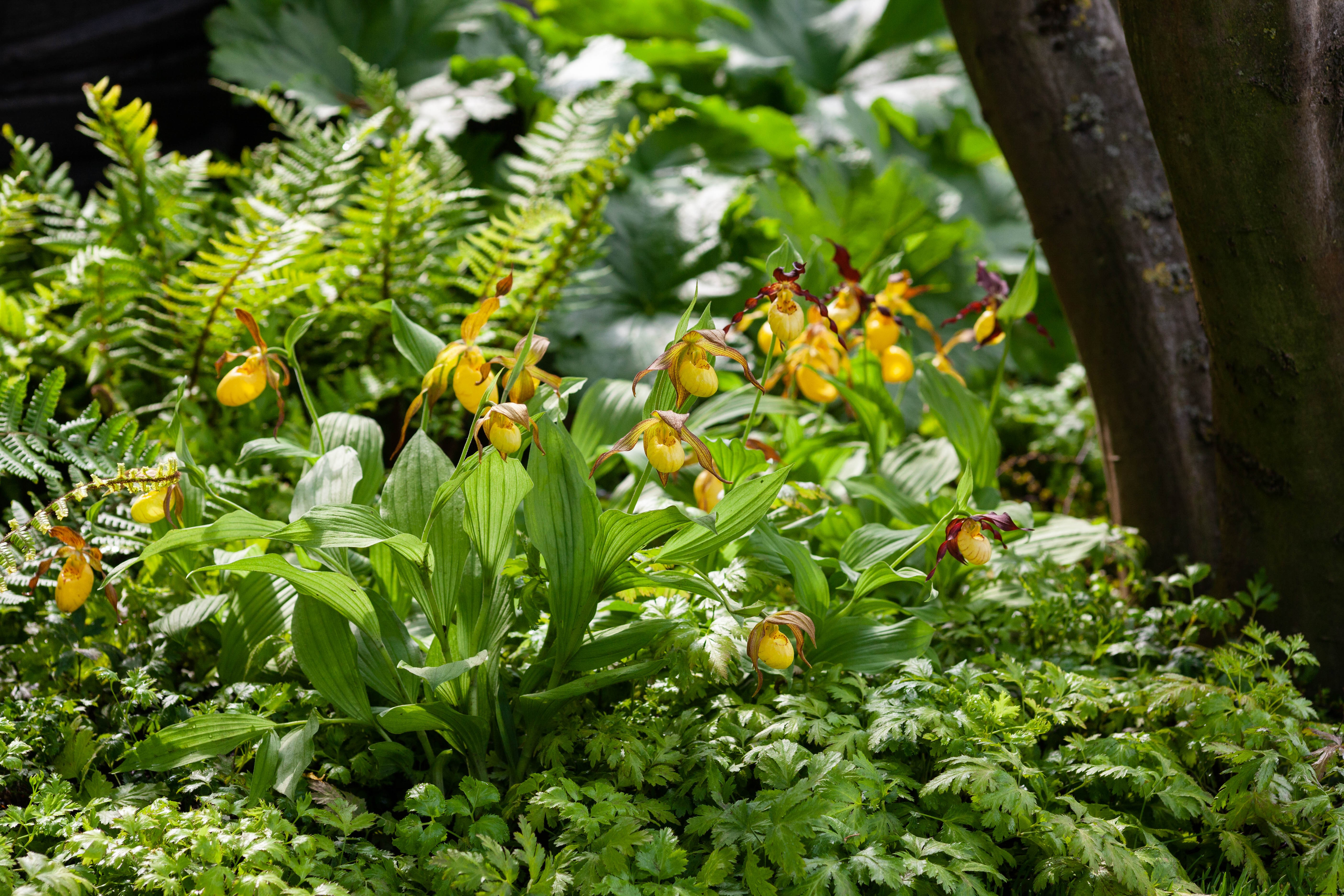 Winning Best in Show at RHS Chelsea 2019, Andy Sturgeon’s garden for M&G Investments was an exercise in green planting. It wasn’t all monotone however. Sparks of acid green and yellow brought the scheme to life. At home, include textural variations with restios contrasting with ferns, equisetum and Gunnera maciatum. Cypripedium, also known as slipper orchids, also put in a show. These are surprisingly hardy plants that can cope with harsh conditions. Try Cypripedium ‘Kentucky Pink’ for a similar look.