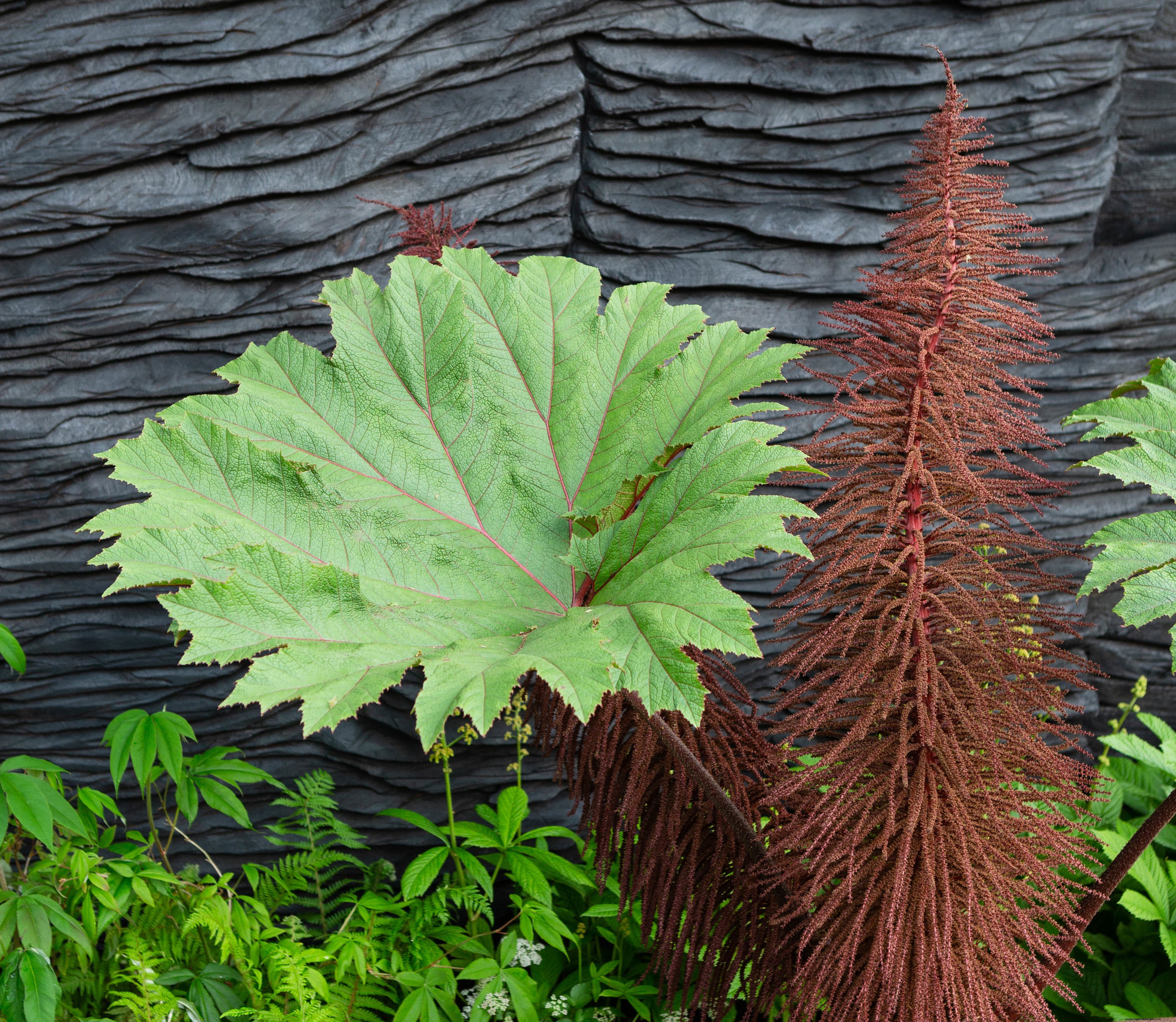If deep, smoky tones are your scheme of choice, work on layering, repeat planting and accents for maximum effect, as Chris Beardshaw did for Morgan Stanley. Use careful composition and placement, include plants like dark-leafed Actaea simplex for drama, and balance rust-coloured Iris ‘Kent Pride’ with acid Euphorbia ‘Black Pearl’.