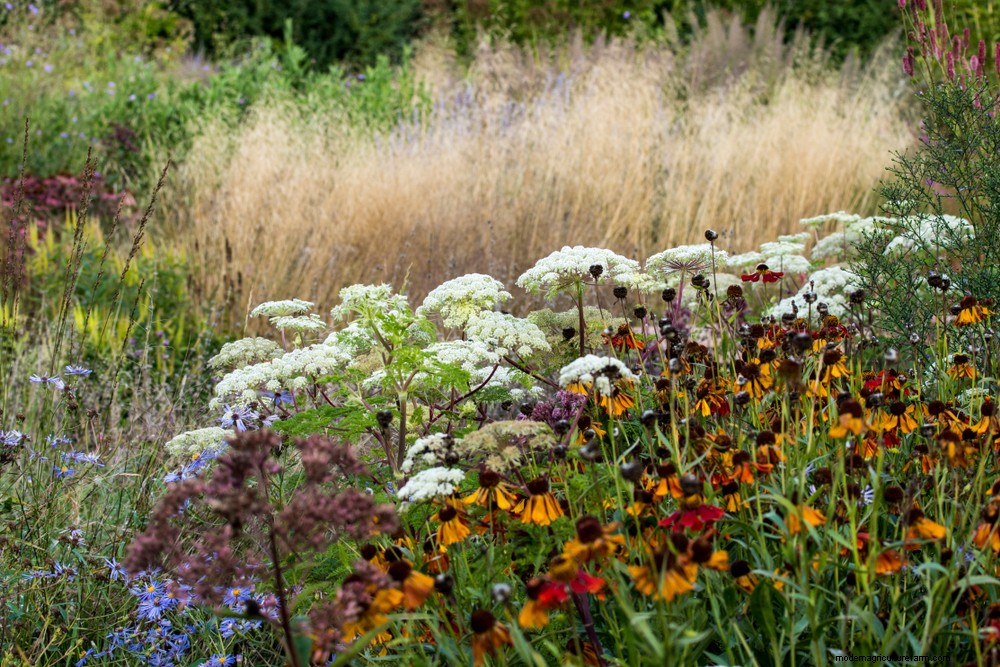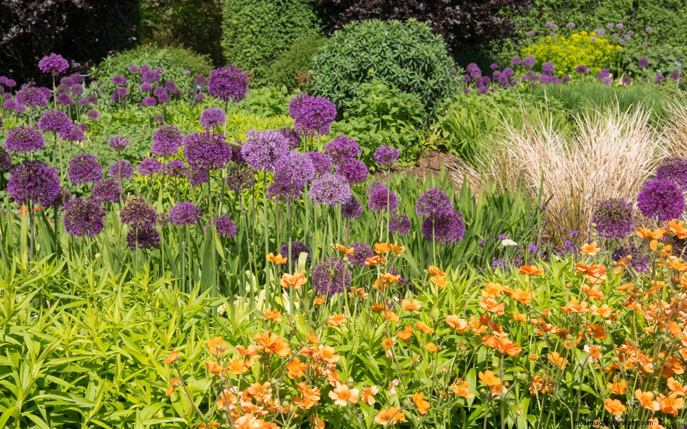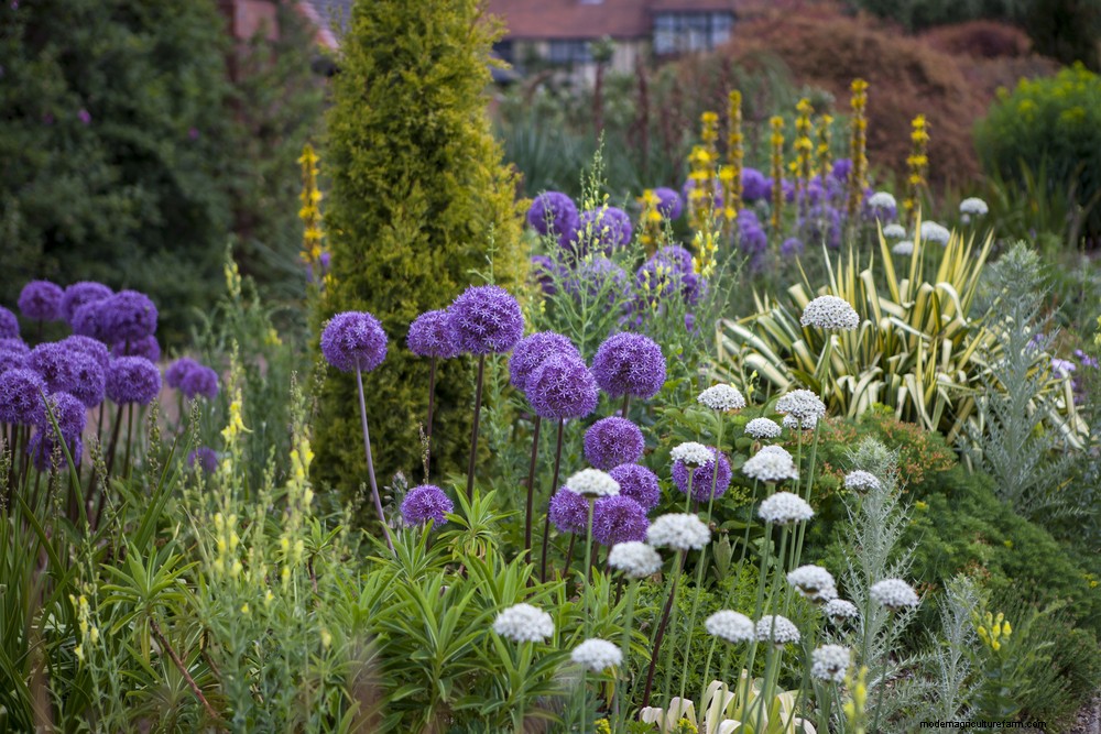 The famous landscape designer often composes his planting schemes using plants with these contrasting shapes – you could also add plants with spherical flower forms to the mix, such as echinops, phlomis or Allium sphaerocephalon. Aim to add new plants with flower forms that differ from their neighbours. At the same time, try to choose those whose flower colour either contrasts completely, or tones harmoniously – and a polished, professional looking border will not be far off. If you want to take it in more of a ‘prairie’ direction, include grasses – Tom Stuart-Smith recommends making them about 25% of the planting.