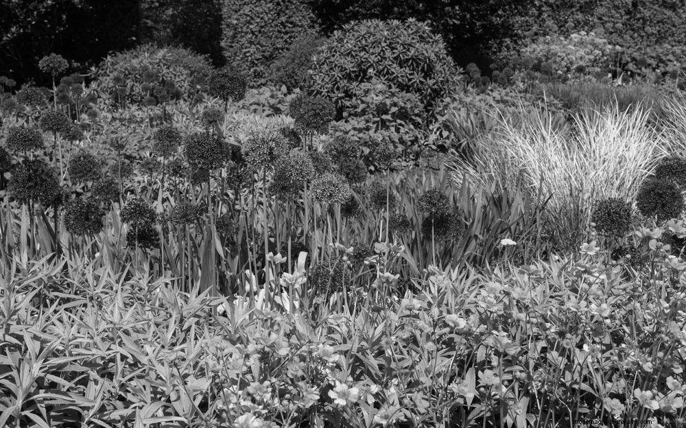 In a talk, Fergus Garrett of Great Dixter suggested photocopying pictures of borders to turn them black and white (most smart phones will take black and white images with a quick adjustment to the camera’s settings too). With the colour stripped away, you can see whether the border relies only on contrasts and differences in colour to work, or whether there is also plenty of contrast in shape, form and texture – a must to ensure that a border continues to look good once flowers have faded and foliage is all that remains.