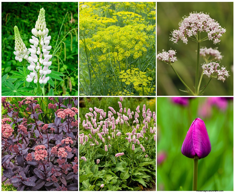 - Foeniculum vulgare for feathery foliage and umbels of yellow flowers