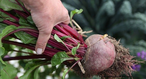 Harvest when the beetroot is the size you like to eat. You can see how big the top of the beet is before you dig it up from the ground. Dig them gently out of the soil, harvesting at separate intervals down the rows to allow smaller beets to develop. If you leave beetroot to get too large it can become a little tough.