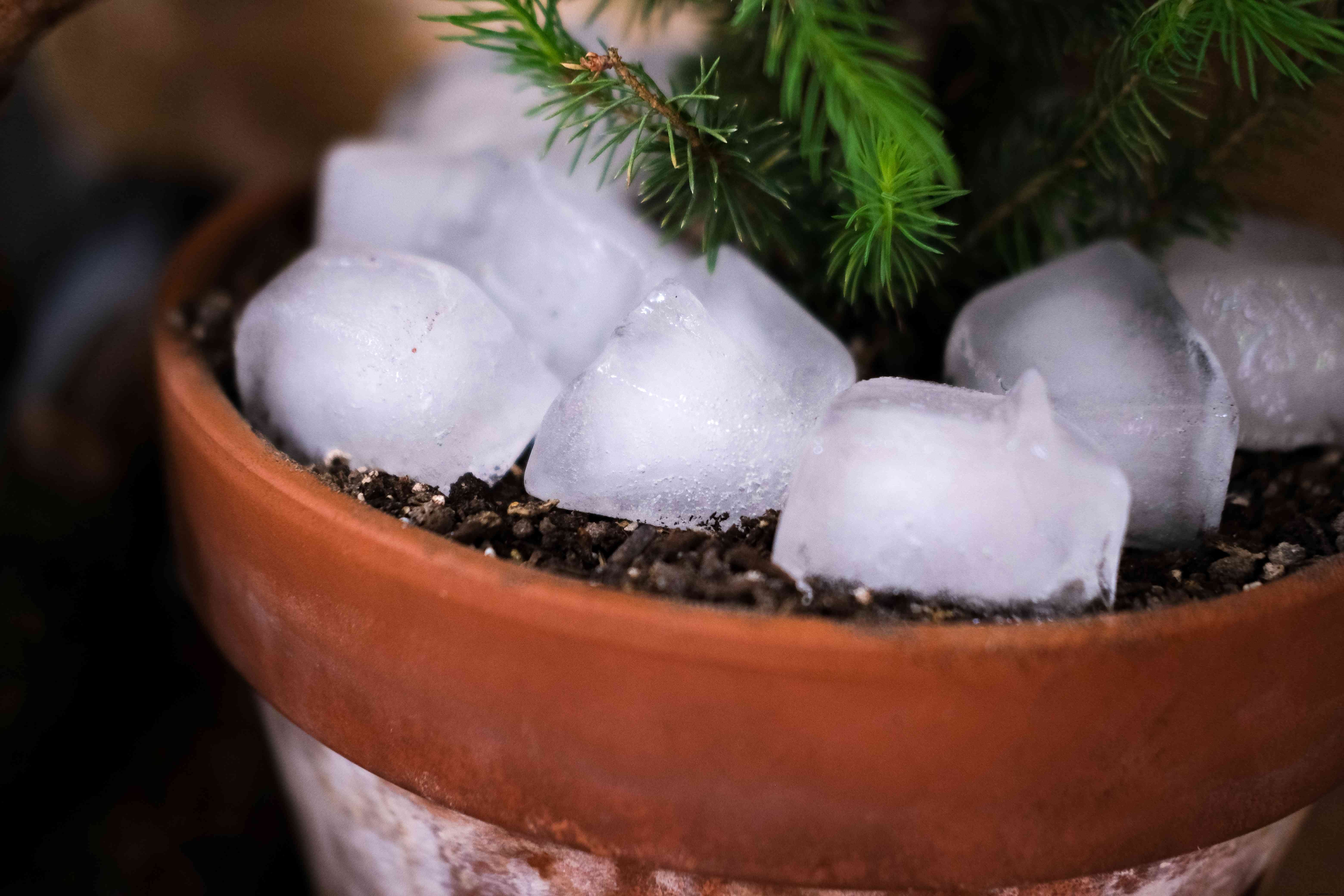 Water the living tree regularly (some recommend watering it a little bit every day), and be prepared for dampness or water overflow under the pot by placing a large saucer underneath. To water the tree slowly so that the soil can absorb it, use ice cubes. Depending on the size of the pot, anywhere from one to three trays of ice cubes can be placed on the surface of the soil, where they will melt and gradually water the tree. Covering the soil with mulch can also help keep it from drying out as quickly.