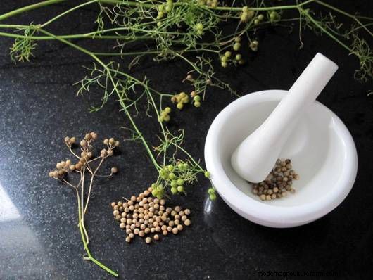 How to harvest: Harvest leaves a few weeks before gathering the seeds (by the time the seeds are mature, the leaves will have become feathery and will be past their prime). Place the leaves on a dish in a warm, dark place, and when thoroughly dry store them in a sealed container. Wait until the seeds start to turn brown on the plant before harvesting them; cut long stems and hang them upside down in a warm place. When totally dry, store the seeds with the leaves (harvested earlier) in the sealed container.
