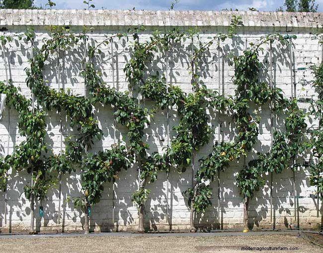 Espalier is the ancient technique of training woody plant growth to produce fruit by pruning and tying branches to a frame.
