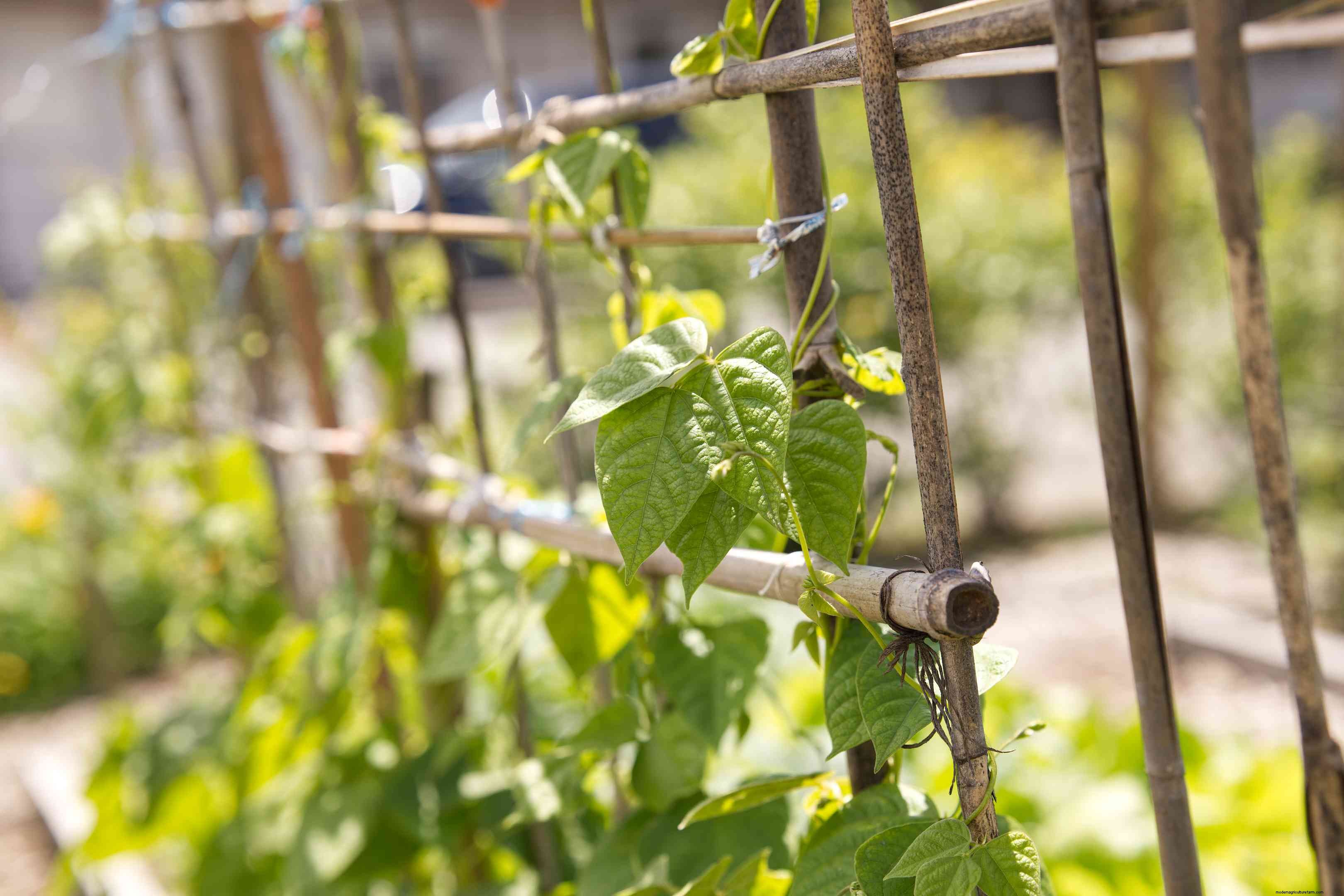While you're thinking about the beautiful plants at your feet, don't forget to take advantage of the vertical spaces on your walls. You can create a vertical space with a trellis. Flowering vines like the fragrant Lonicera periclymenum "Scentsation" with its gorgeous yellow flowers or any of the Clematis make beautiful climbing plants. Another climber is scarlet runner beans. They produce a beautiful red flower that is followed by a lovely drooping and interesting bean pod.