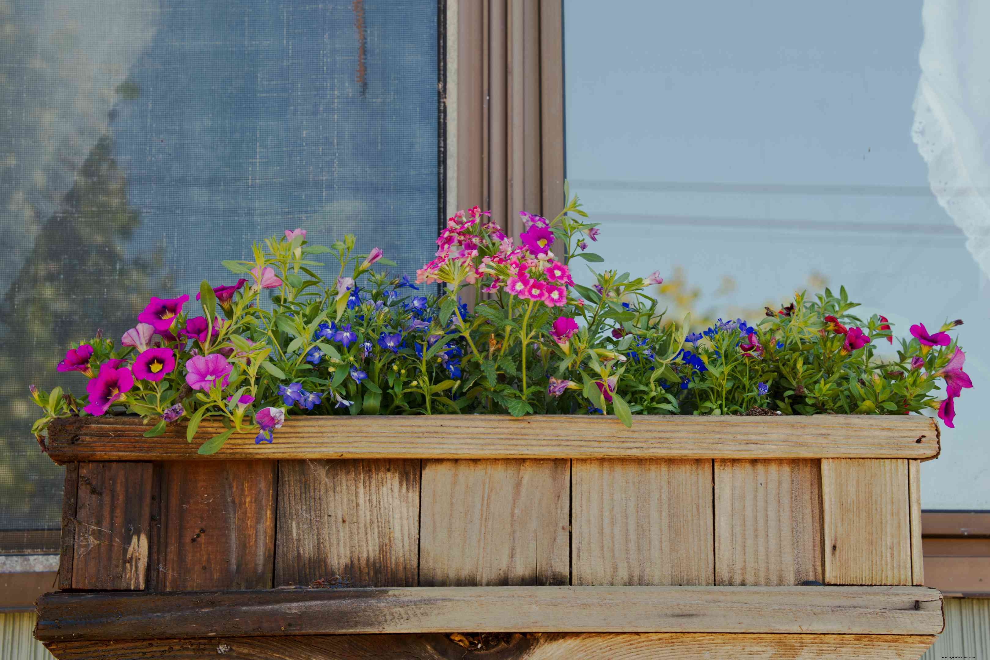 Window boxes are a great place to add splashes of seasonal color. If you have a sunny widow, add interest to your window box with trailing flowering plants that will send blooms cascading over the sides. In some cases, and with good care, the flowers can even hide the container entirely. Excellent choices for trailing and flowering summer annuals are petunias, million bells (Calibrachoa), Lobelia erinus (trailing lobelia), which is available in flowers of white, blue and purple, and parrot's beak (Lotus berthelotii). For boxes in shady areas, vincas and ivy are popular trailing choices for their ability to spill over the edges and tumble out into the air.