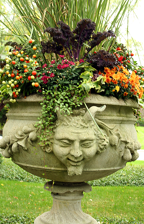 This week I toured Chalet Nursery and Garden Center in Wilmette, Illinois. As part of the tour we visited a couple of gardens of their North Shore clients and I got to see how the well-to-do garden. While you and I may not be able to afford to have landscape architects and a landscaping crew on retainer, there’s no reason gardeners in the 99% can’t plant spectacular fall container gardens.