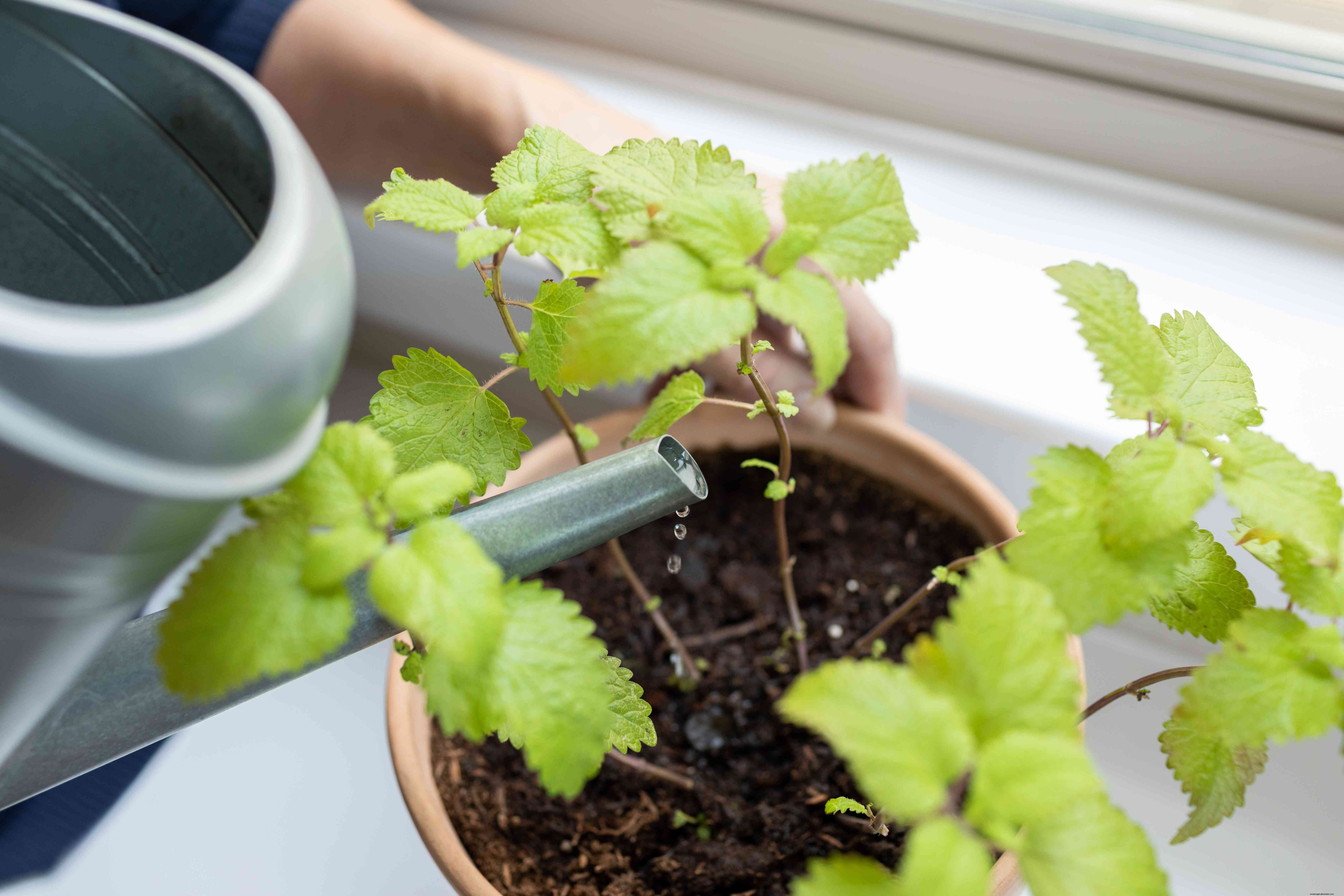 While lemon balm will tolerate some drought, it prefers regular waterings in well-draining soil and bright conditions. Indoors, you might even consider misting it every few days to help it thrive.