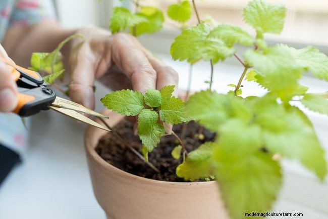 Similar to other herbs, you can harvest lemon balm leaves at pretty much any time, even when they are young. If you want to have a large harvest, pick the leaves off just before the plant has reached full maturity.
