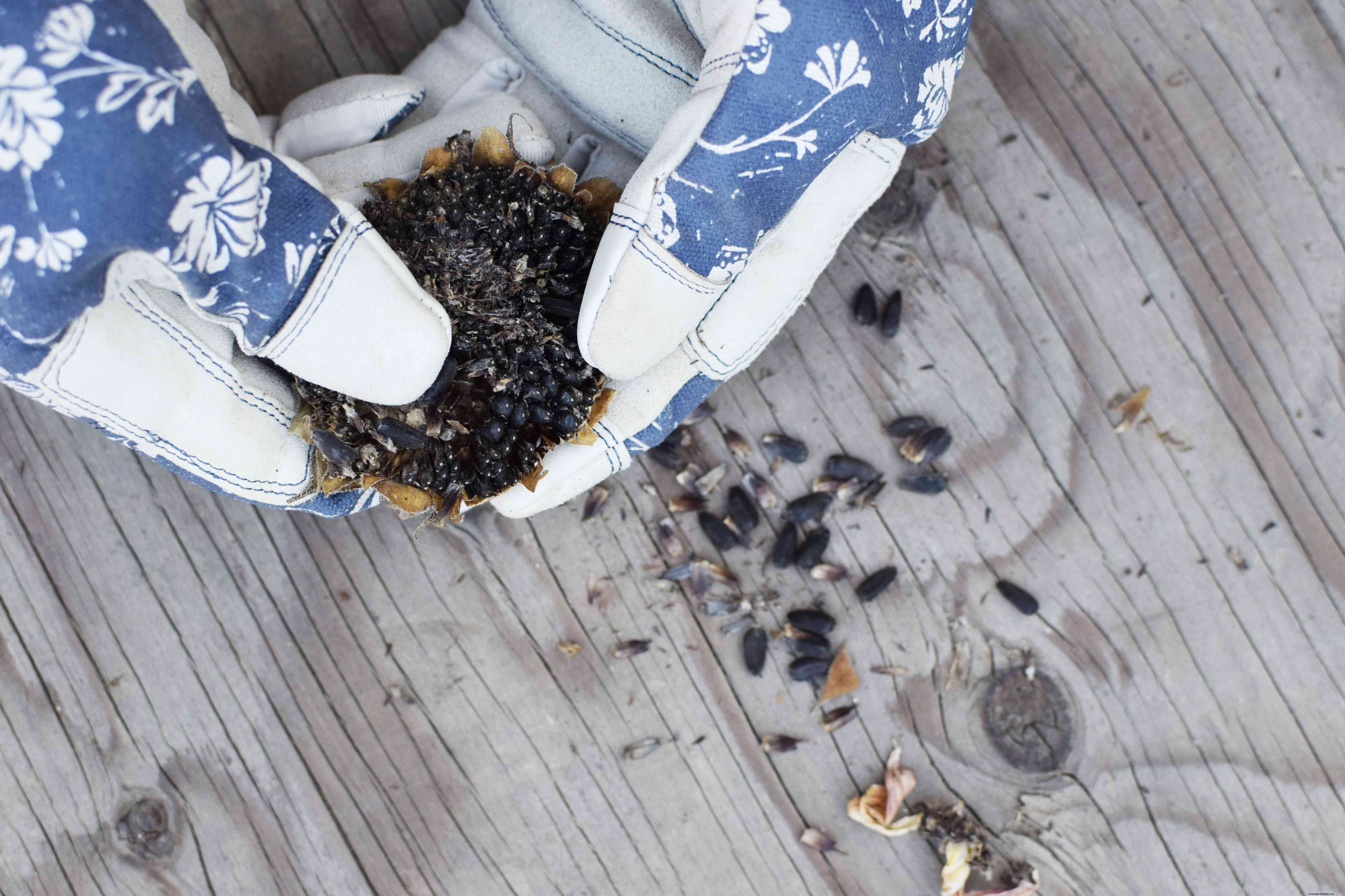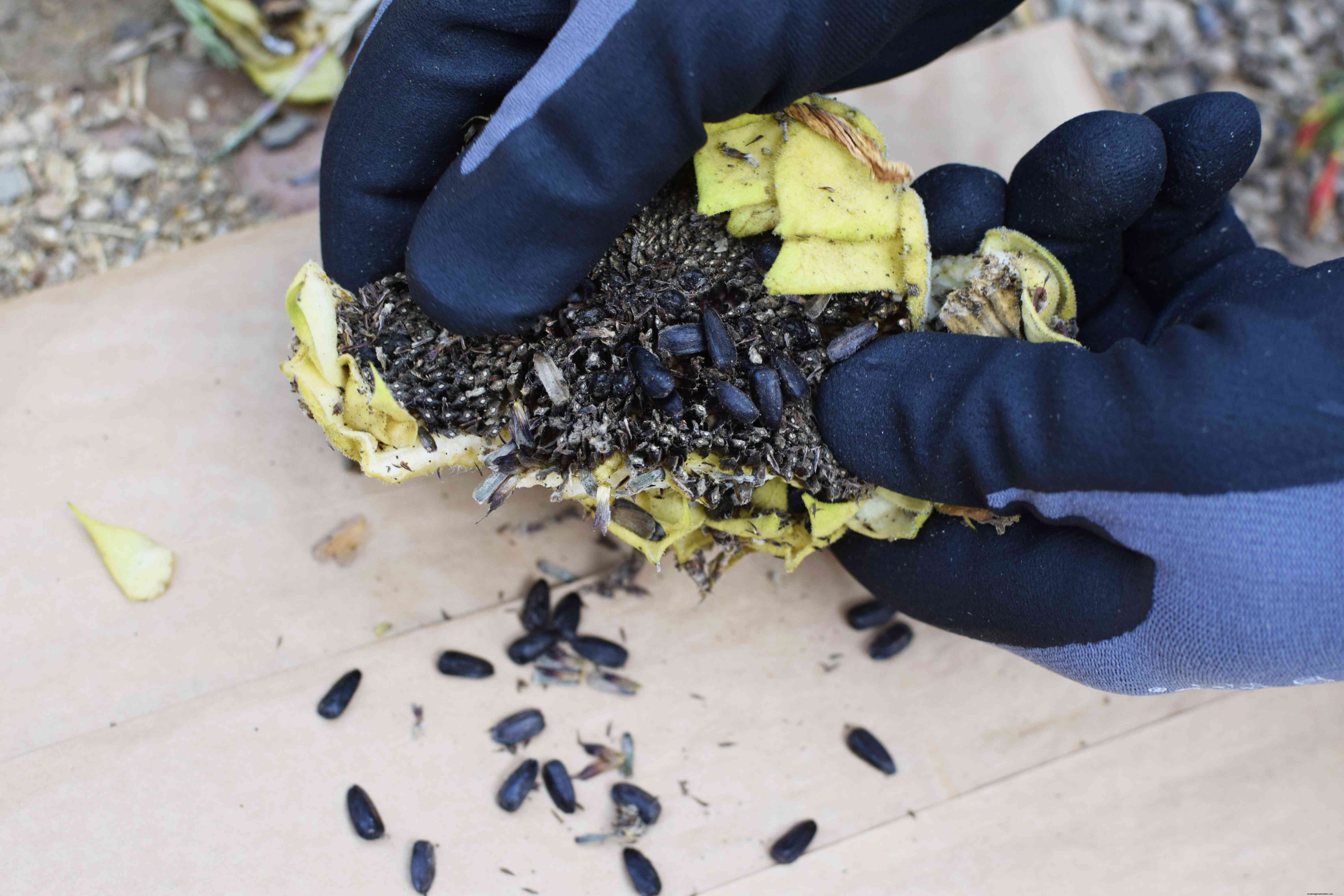If you want to eat them yourself, you can just pull the seeds out on your own and dry them. Another option is to cut the seed heads off, wrap them with a paper bag, and then hang them upside down. As the seeds dry, they’ll fall off and you can eat them when you’re ready. This method is actually a good way to save seeds from any of your sunflowers. All seeds can be saved from one season to the next to keep your sunflowers growing.