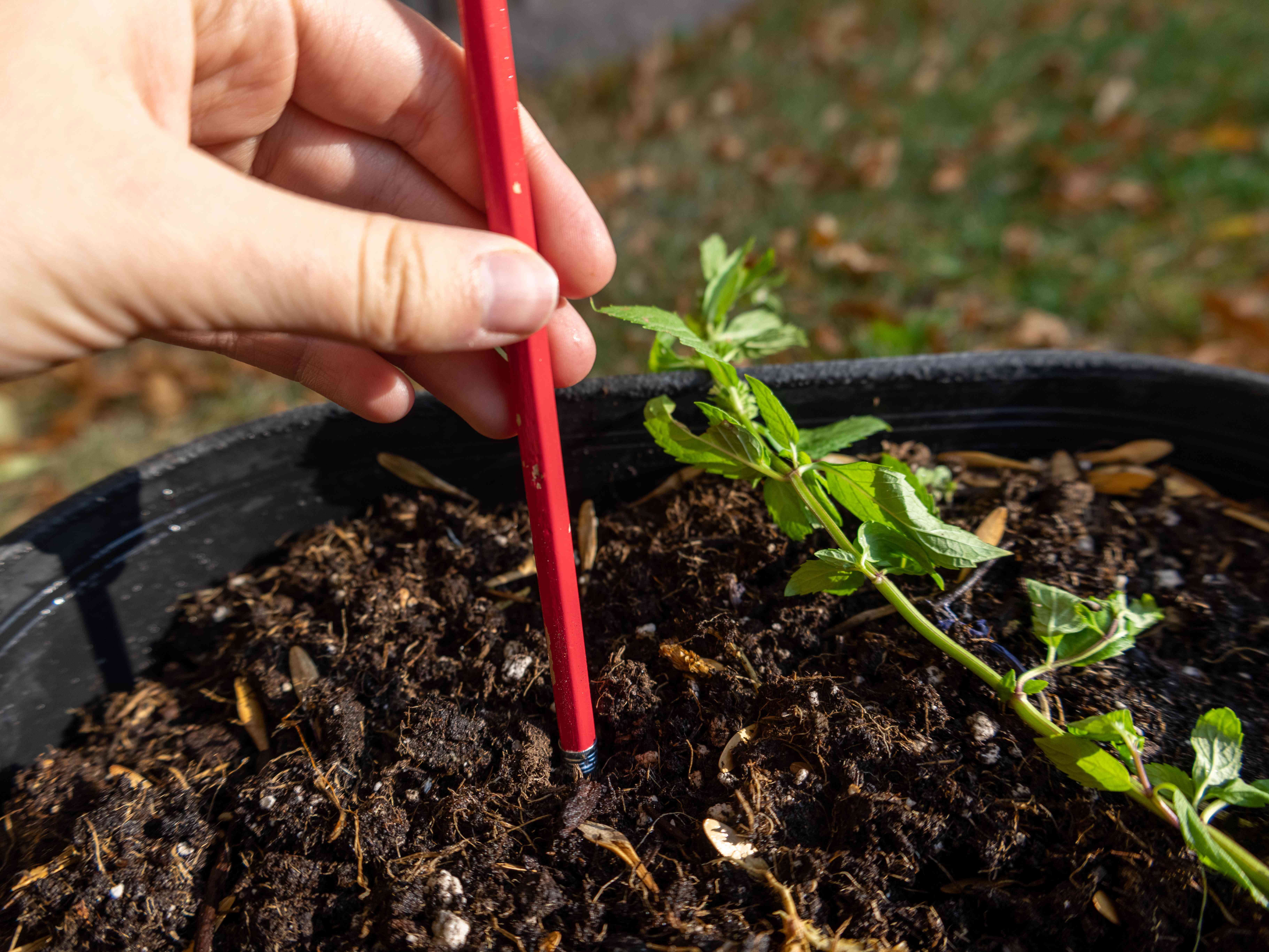 A paper published in Plants recommends that soil be cleared completely of any weeds in preparation for planting. When working on a smaller scale, soil can be thoroughly cleaned and manure can be mixed in with a garden tiller. (Of course, growing mint in containers filled with potting soil eliminates this chore entirely.) The authors of the paper also reported that fertilizing with nitrogen and some sulfur increased the volatile oils in the mint plants.