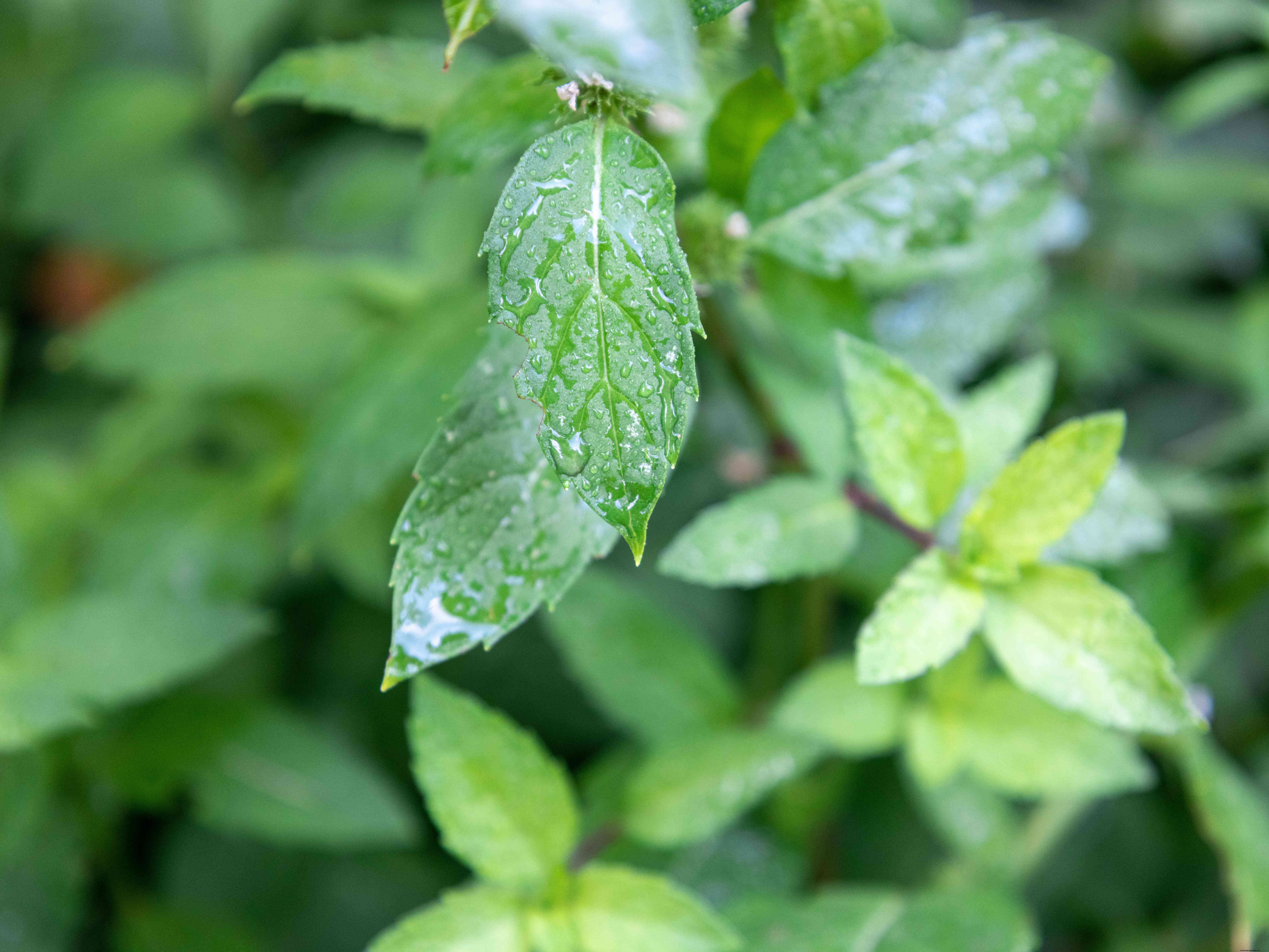 When the plants have created a thick canopy, evapotranspiration is somewhat blocked; however, after clipping and thinning plants, more water can evaporate from the soil. Use a moisture meter to adjust watering. Drip or furrow watering is recommended, as water on the leaves damages them and reduces the volatile oils. Mint prefers moderate temperatures as well as a mid-range humidity level.