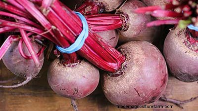 Beets can be harvested as soon as the roots begin to size. Generally roots are mature 60-80 days from seeding, depending on variety. As the roots get larger they tend to get more fibrous. Use a digging fork to loosen soil and pull up needed plants by the tops and trim off leaves. Wash and store at 32ºF and 95% relative humidity for 2-4 months. Young leaves may be cooked and eaten as well. Harvest beet leaves when they are 4-6 inches tall. Beets should be harvested before heavy frosts or freezes.