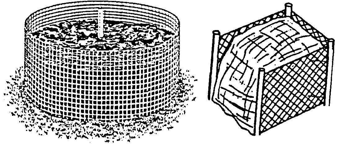 Hoop It (low cost, tidier than heaps) Woven wire mesh or fencing make good enclosures and keep the pile tidy. If you secure it with hooks or twists of wire, you can undo the hoop, set it up next to the pile, and turn the pile back into the hoop in its new location.