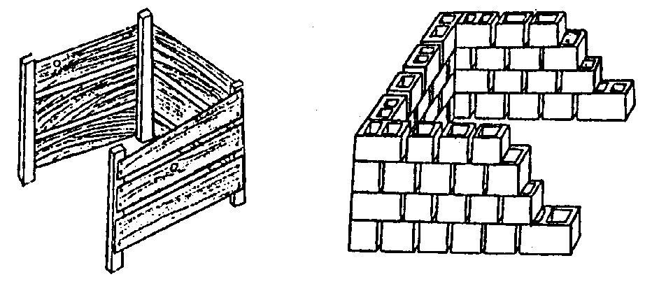 Box It (looks good, easy to cover, low to moderate cost) You can use almost any type of scrap or new lumber, bricks, or cinderblocks to build an attractive and functional bin for compost. Make sure to leave spaces in the sides for air to get through, and make the front removable for easy access to turn or retrieve the compost. Construct several bins side-by-side to facilitate turning of the compost.