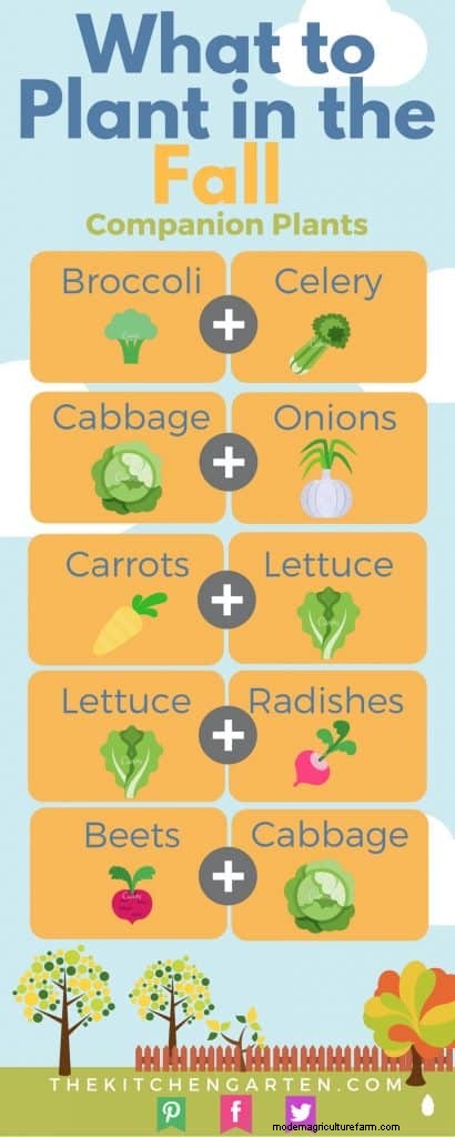 These are popular fall vegetable garden favorites. If you have a square-foot or limited space garden, here’s a great visual on the best fall companion plants.