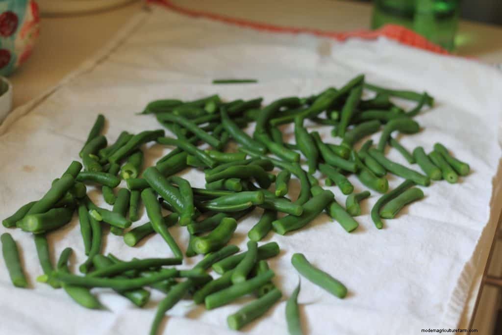 Try to pick your beans when they’re still a bit tender, and not overly large and tough. I have a whole post on how to harvest beans, so check it out! Now on to the instructions!