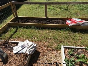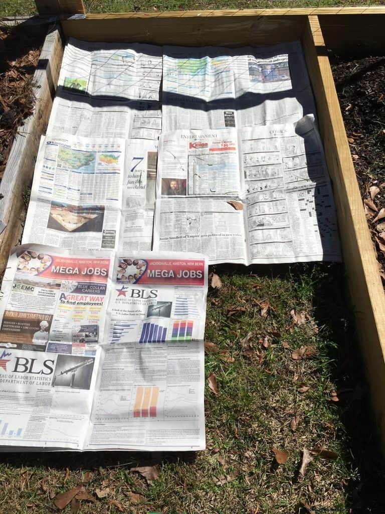 2. Line the path with newspaper 5-6 sheets thick. This is your first line of defense against weeds and grasses poking through. And look, you’re recycling newspaper. Win!