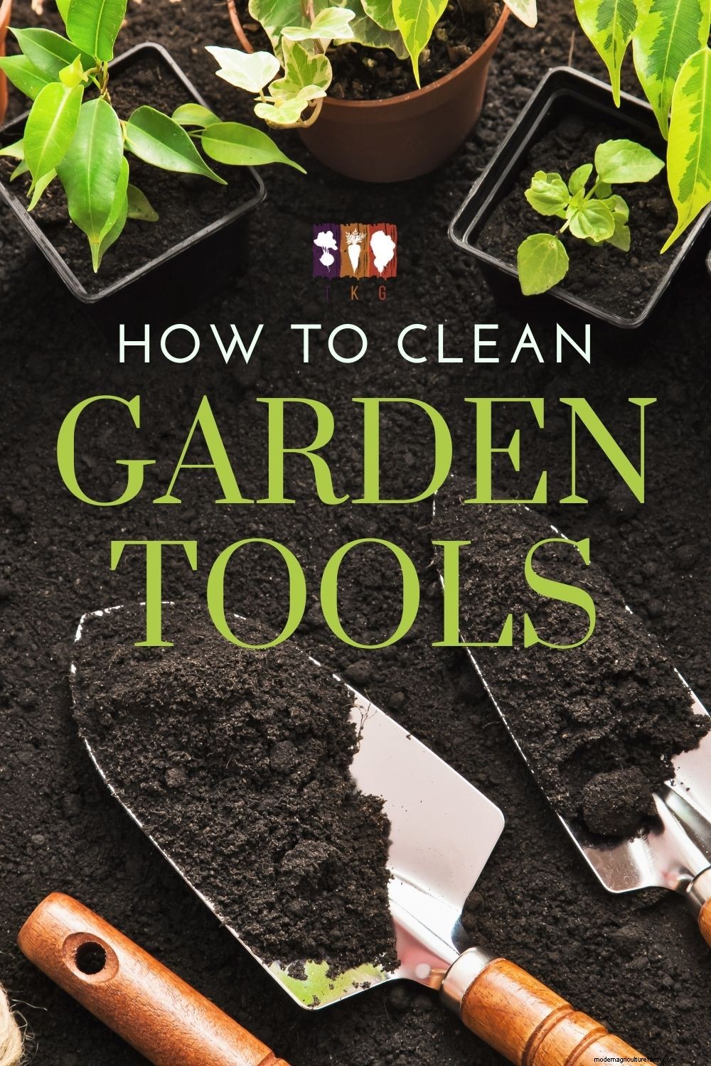 - To remove excess dirt and debris from your garden tools, use a stiff bristled brush. Or if the dirt on your tools is fairly wet, you could even spray them off with a high pressured hose setting. If you’re just cleaning off your tools for the day, you can simply complete this step as quick daily maintenance. Be sure if you are hosing off for the day to dry off your tools with a dry cloth.