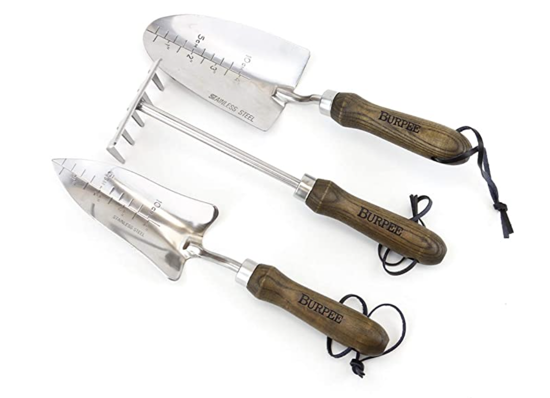 I actually purchased a stainless garden spade myself and am loving the low maintenance. I hope to slowly add more stainless to my garden tool arsenal. Here’s a 3-piece hand tool set from Burpee that has beautiful wooden handles: