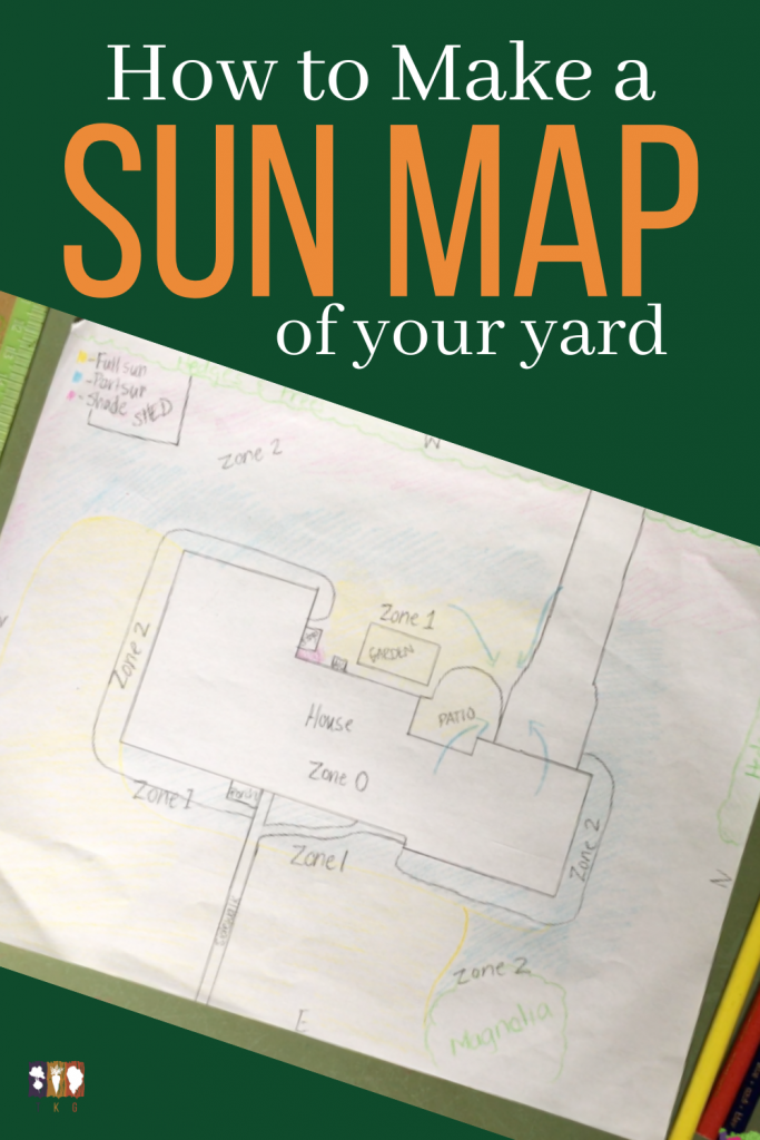 But I notice areas of our yard get less sun during the winter months due to shorter days. Just take this into consideration if you are trying to make a sun map in late December. Here’s what you’ll need: