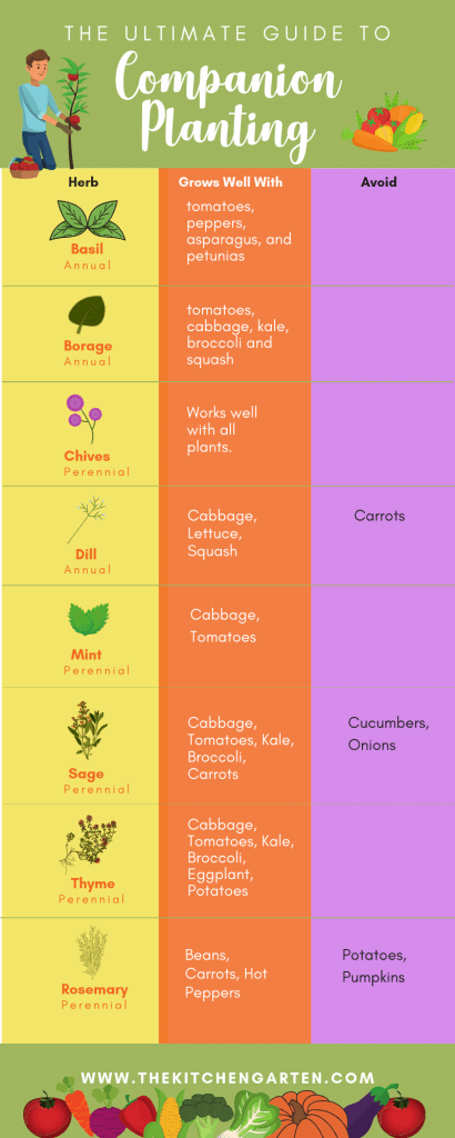 I’ll also have some flower companions, perfect for the vegetable garden, listed below the herbs. So don’t forget to check those out and to snag the infographic/printable at the bottom as well!