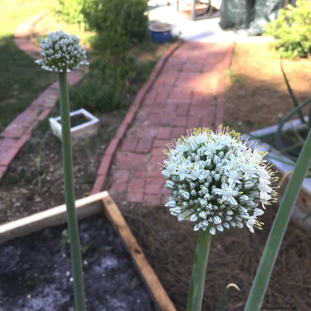 The first year I grew onions in the garden, I had no idea what I was doing. The long tops were almost as tall as my shoulder, and the blooms were so pretty.