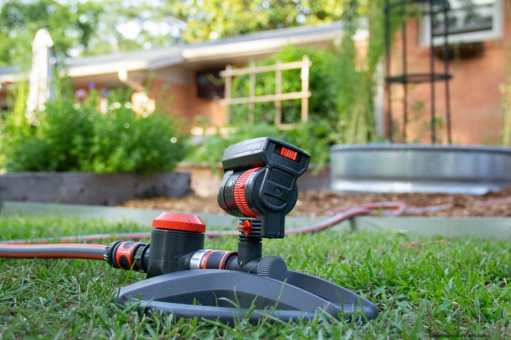 For raised bed gardens , watering systems can be range from drip irrigation systems to soaker hoses to traditional sprinklers. They all have their benefits and downfalls, but here are my thoughts on having used all three.