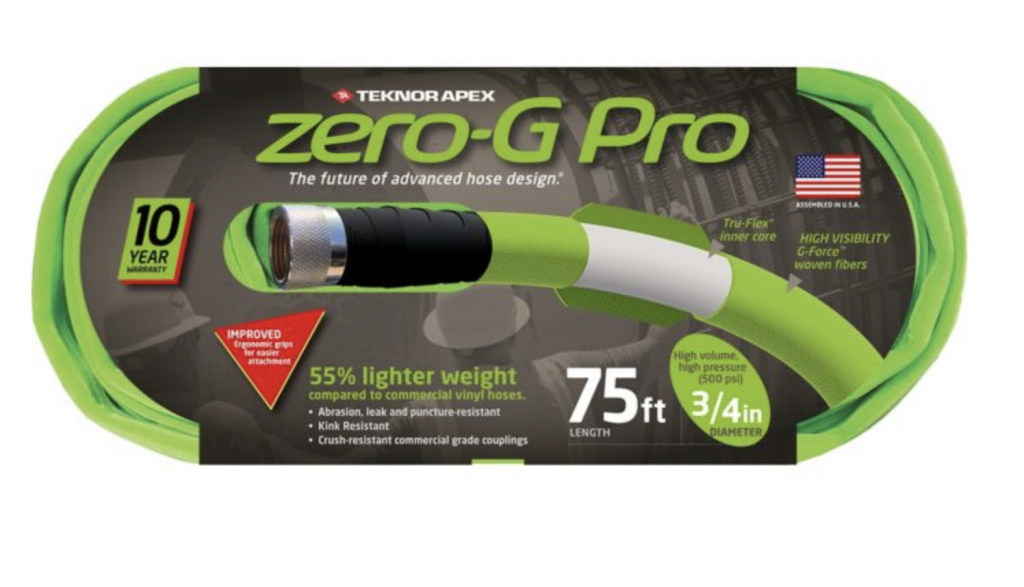 Teknor Apex Zero-G– If you’re looking for a light and compact hose, then this Apex Zero-G is the choice for you. It can fully fit into a 5-gallon bucket, and is 50% lighter than a standard garden hose. Perfect for older gardeners, or those with a smaller space.