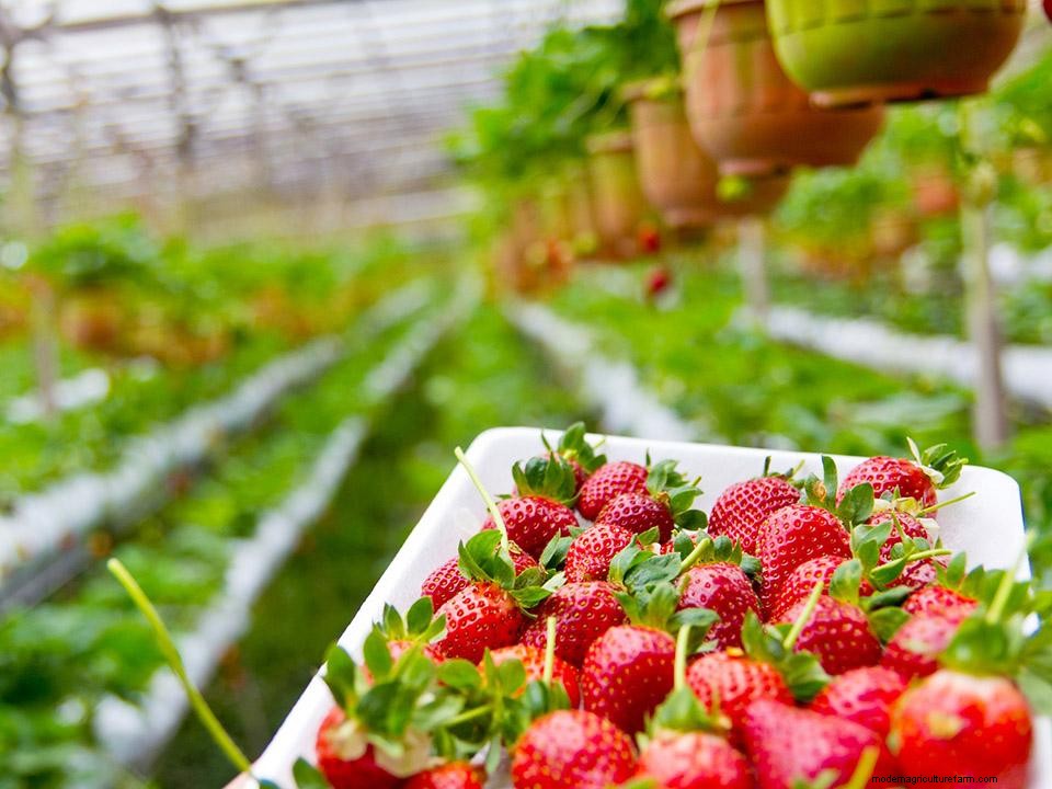 Raising strawberries in a greenhouse prevents them from pests and outside weather and it means that they will fruit up to a month ahead than outdoor.