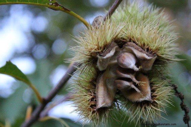 Be careful where you plant a chestnut though. The spikey outer husk around the nuts is absurdly sharp. Chestnut husks aren’t fun to step on, trust me on this one. Keep chestnut trees away from walking paths, especially if you have young children.