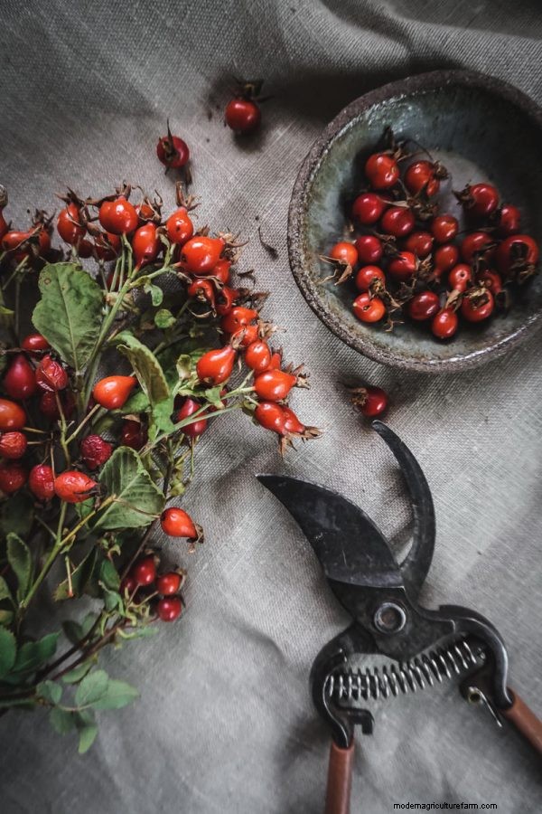 It turns out that rose hips are the rose plant’s seed pods rather than a particular plant themselves. The hips are the fruit, looking like a small cherry. The Rugosa variety of roses produces the best hips, and Rugosa Roses bloom from spring until the first frost.