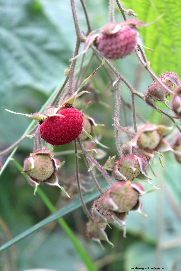 Thimbleberries look like raspberries yet wider and flatter. The fruits are soft and delicate and spoil fast after damaging. Damaging and bruising often happens at harvest time, so fresh eating is how most are used.