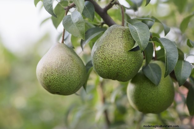 Pear trees are another cold-weather fruit tree, and they are even easier to grow than apple trees. They grow in USDA zones 4 to 8, although some varieties can tolerate the cold winters in zone 3. European varieties, such as Bosc, Anjou and Bartlett, produce the classic pear-shaped fruit, while the fruit from Asian varieties, such as Hosui, Chojuro and Shinseiki, tends to be round like an apple. European varieties need between 600 and 900 chill hours for fruit production, while the Asian varieties need only 300 to 600 hours.