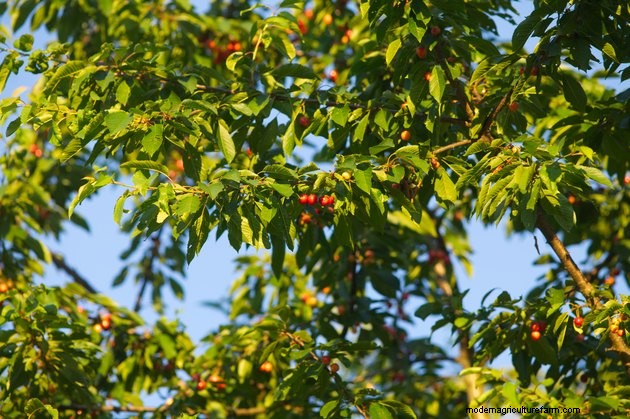 The cherries are ready for picking when they are plump, firm and have good color, usually from the middle of June through July. One sign of ripe fruit is that the local birds start to take an interest in them. Netting draped over the trees can exclude birds. Remove cherries with their stems. The fruit does not continue to ripen once picked.