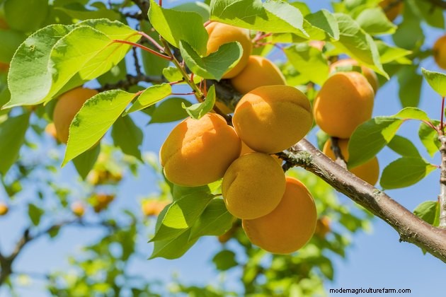 Delightfully sweet with just a hint of tang, apricots (Prunus armeniaca) are a must-have in the home orchard across this plant's hardiness range in USDA zones 5 through 8. Apricot trees are some of the very first fruit trees to bloom in the spring, and as such, they are ready to harvest earlier in the summer than other fruits. In its prime, a single tree can easily produce fruit in excess of 150 to 200 pounds every year. Dwarf varieties produce 50 to 100 pounds, so you'll have plenty of apricots no matter what size tree you choose.