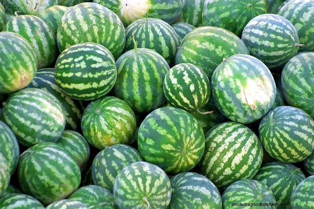 Direct sunlight can affect the quality of watermelon after harvest. Melons left exposed to sunlight will develop sunburn rapidly. Keep the fruit in shade, after picking it, until you can store it long term. Heat may also affect the quality of the fruit. Temperatures above 90 degrees Fahrenheit can cause internal flesh breakdown and increase decay, causing the melon to become soft. The ideal temperature for storing watermelons is 50 to 60 degrees Fahrenheit. Store watermelons in a dry place; high humidity can encourage stem-end rot.