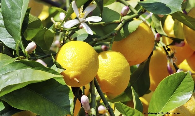 Treat large insect infestations with organic, ready-to-use insecticidal soap. It smothers all four pests on contact, without harming the bees arriving after it dries. Avoid spraying soap on lemon trees when they're flowering. When no direct sun is on the tree, spray until it drips from the entire plant, making sure to hit the backs of the leaves.