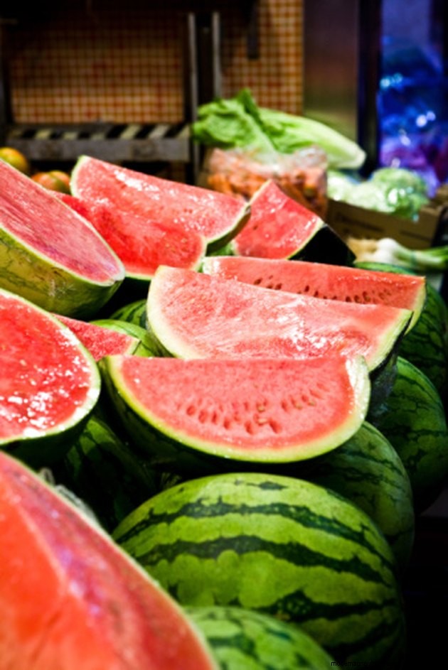 Once a Crimson Sweet watermelon is picked and taken to market, you don't have the luxury of knowing when the melon was harvested. Examine the melon's skin to discover additional indicators of ripeness. The rind is firm and doesn't give when pressed with your thumb fingertip. The light and dark green-striped skin looks dull, not glossy. Turn the Crimson Sweet watermelon over. The bald spot on the melon bottom becomes cream or pale yellow in color when it's ripe. If the bald spot is still pure white or light green, choose another melon.