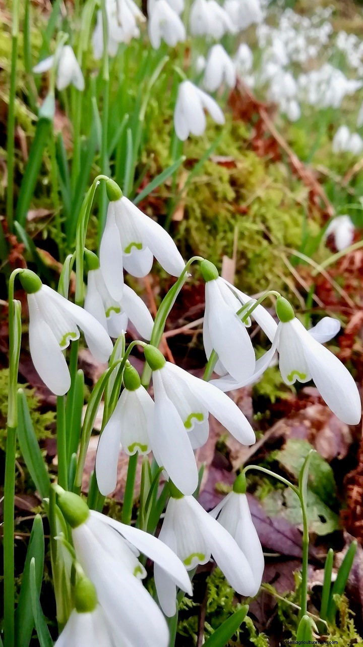 Dense sheets of coy, white and yellow-tinged flowers flowed over every bank and knoll. Snowdrops. Not a mollusc in sight, just perfect, glistening, unsullied snowdrops. Some pushed up through short grass, others parted a thick carpet of leaf mould. Each swathe of blooms were labelled. I studied one: Galanthus nivalis/clone 2022.59a.