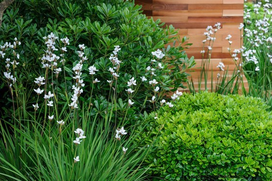 If you’re after a windbreak, this evergreen can be grown as a dense hedge to block out winds, or can be grown as an attractive tree. Pittosporum tobira can easily withstand direct, salt-laden winds. On top of this, the clustered white flowers have a heavenly scent similar to orange blossom.