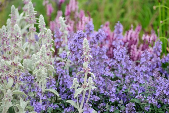 Catmint, Nepeta, is a fabulous alternative to lavender for creating informal hedges of colour. Go for a cultivar like ‘Six Hills Giant’, or ‘Walker’s Low’ for a shorter hedge. For planting in borders, try Nepeta kubanica or Nepeta subsessilis, which is good for damp soils.