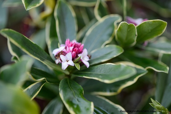 Domed heads of waxy flowers release their heady, jasmine-like perfume in January and February. Grow in sun or semi-shade. Daphnes like a rich, well-drained soil, so use a good loam-based potting compost. They don’t like being moved or disturbed, so plant them in as large a container as possible.